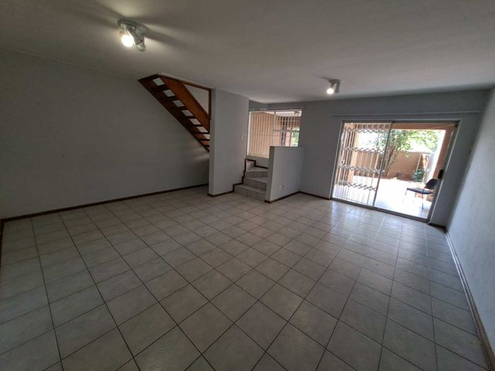 Entertain effortlessly in central Fourways secured enclave, with double-volume living, undercover patio overlooking a quaint garden. Three bedrooms, two baths and a single garage.