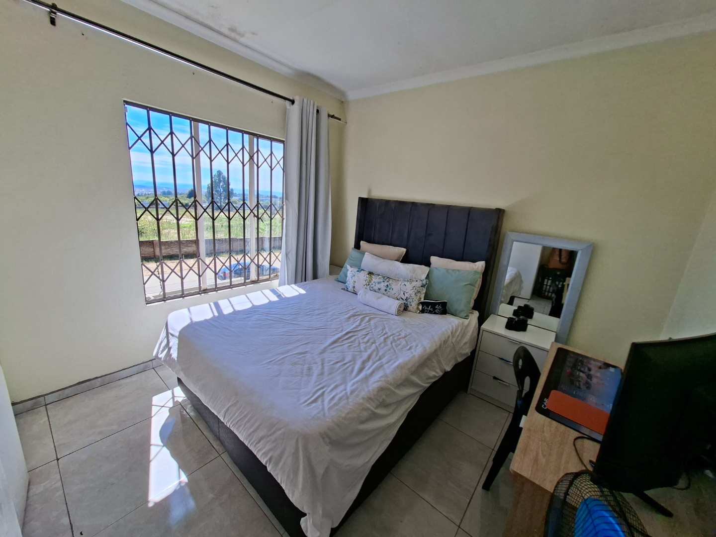 2 spacious, neatly tiled bedrooms with built-in cupboards