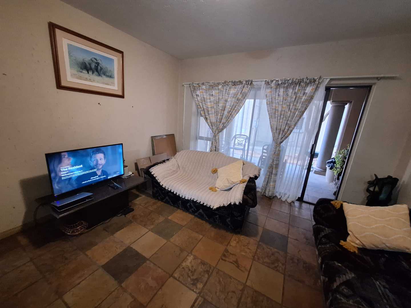 Open-plan, fully tiled lounge leading out to a private, undercover patio