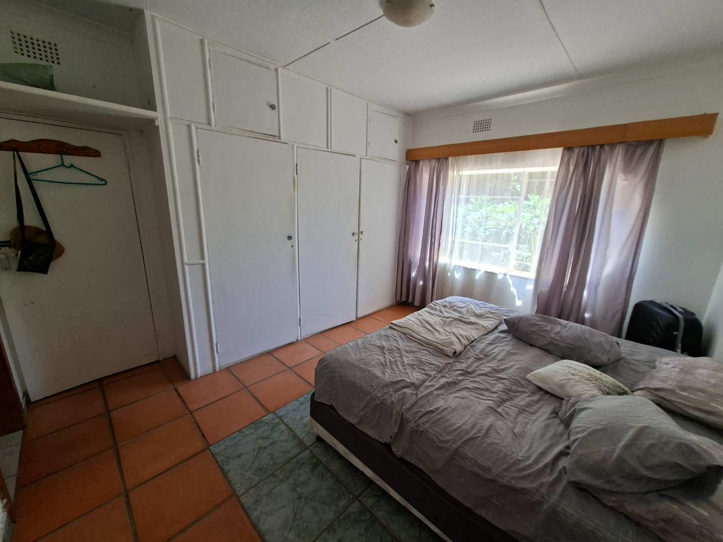 2 spacious tiled bedrooms with fitted cupboards and curtain rails