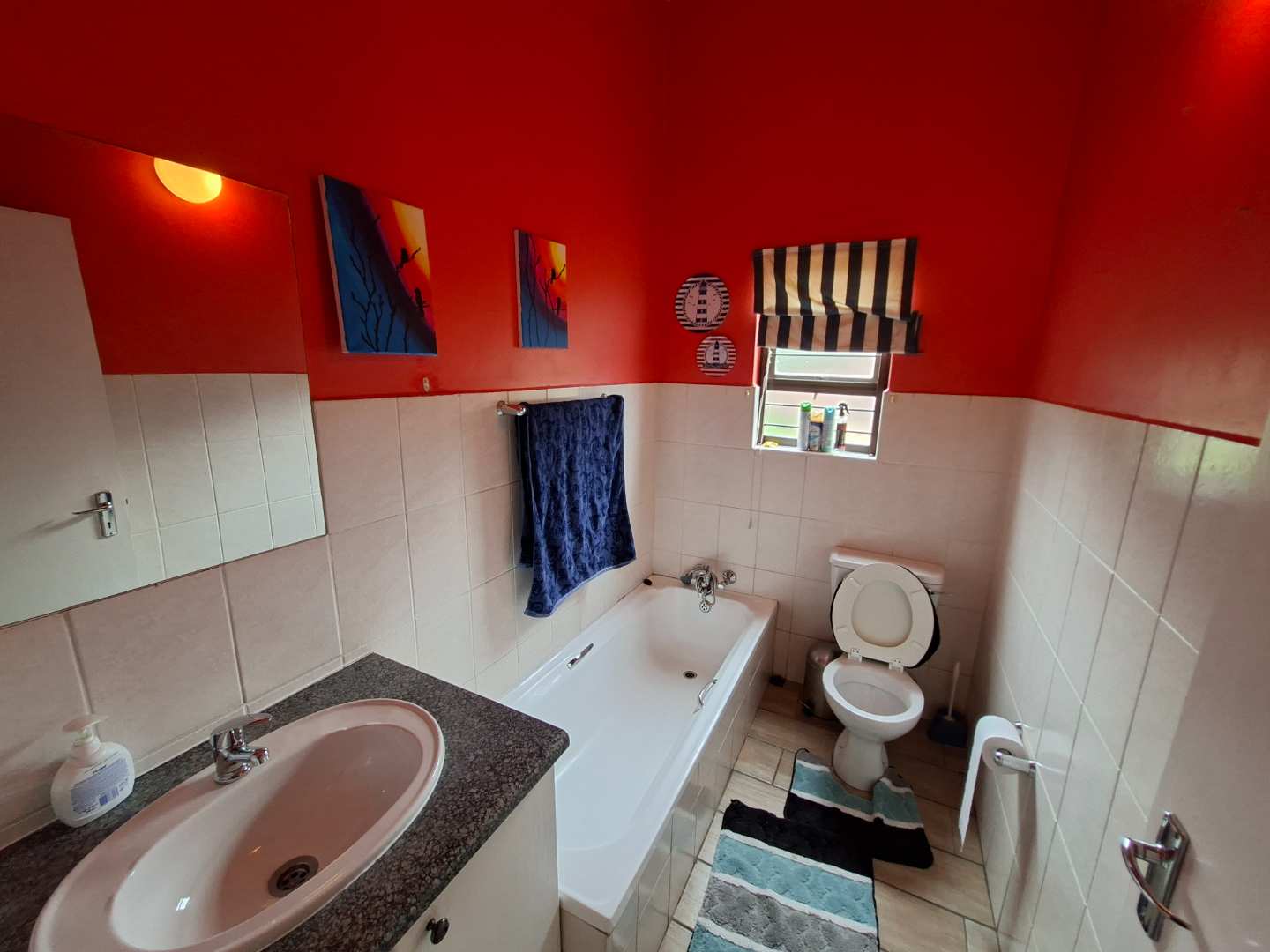 Second bathroom is a full bathroom comprising a bath, toilet, and basin